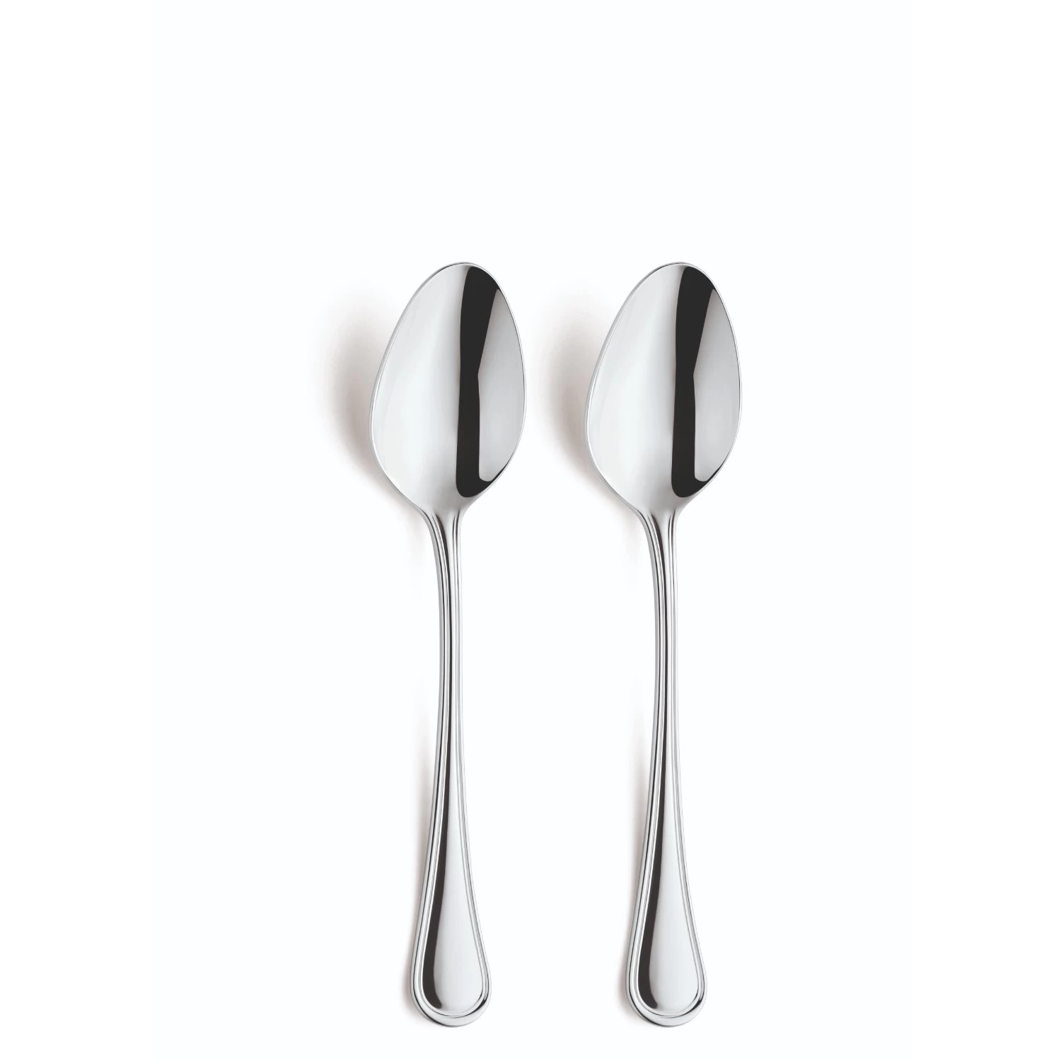 Jouw gedekte tafel ziet er stijlvol uit met bestek van Amefa. Deze set van 2 tafellepels van model Fleur hebben een dubbele decoratie rondom het hele heft. Dit zorgt voor een sierlijke, klassieke uitstraling. De lepels hebben een hoogglans afwerking en zijn 20 cm lang.