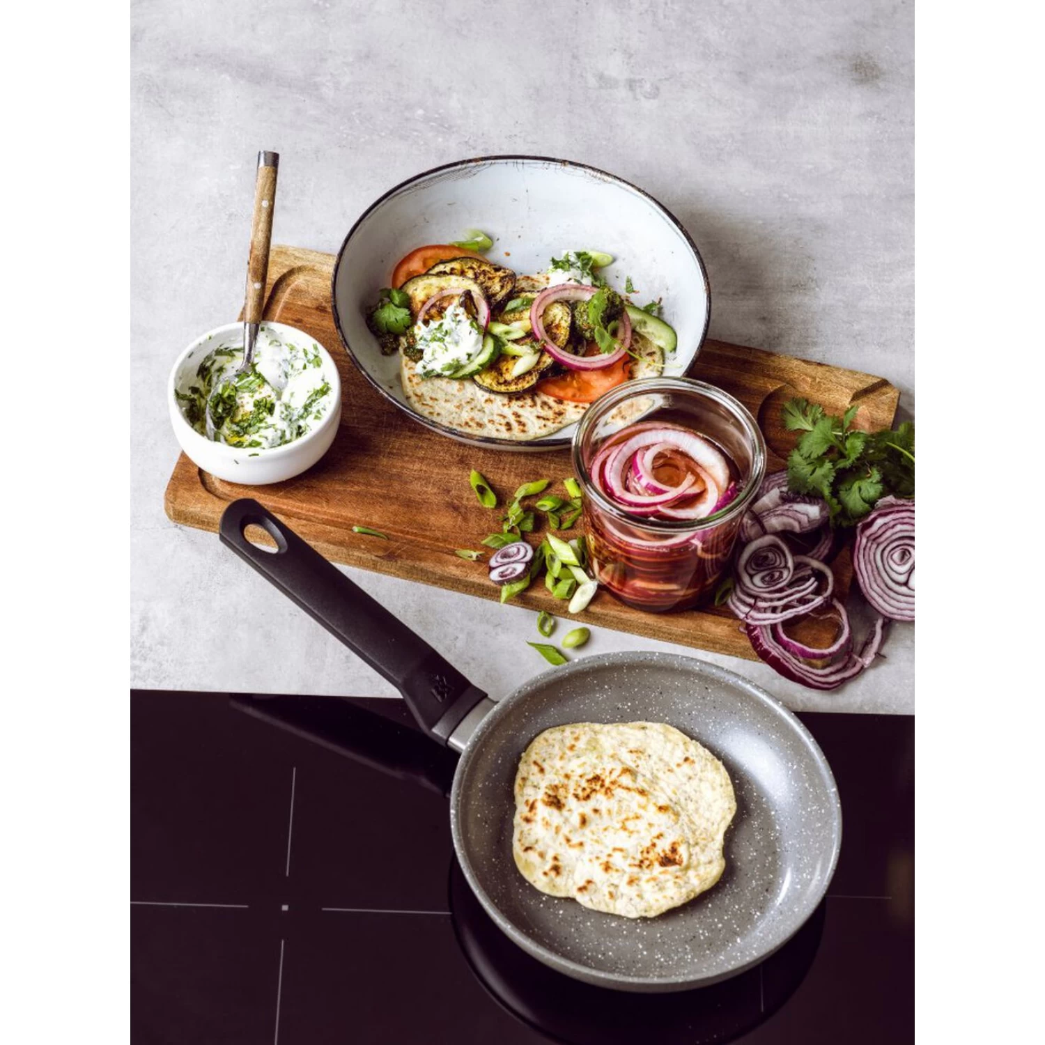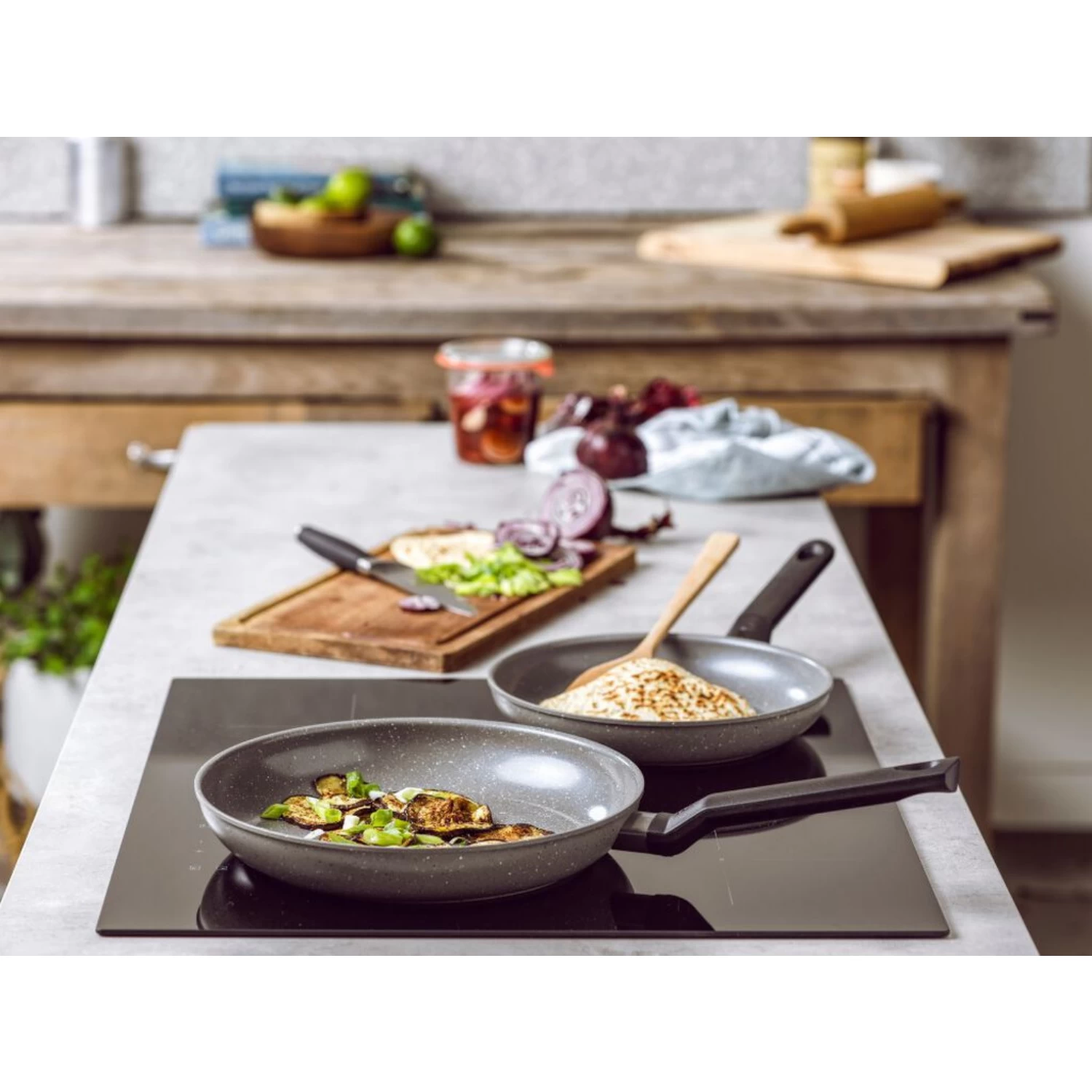 Gezond bakken op alle warmtebronnen met de BK Granite koekenpan Ø24 cm. De hippe stonelook coating en een stevige kunststof greep maakt deze pan een opvallende verschijning op elk fornuis. De hoogwaardige keramische non-stick coating (vrij van PFAS) kan tegen een stootje en is perfect voor het bakken of braden zonder of met weinig oliën of vetten.