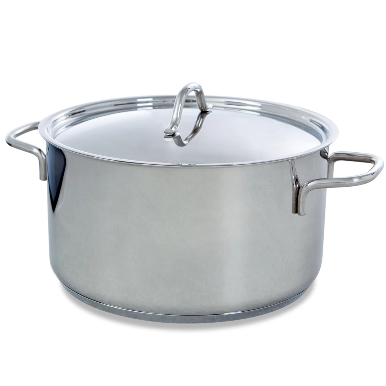 De BK Profiline kookpan Ø24 cm is een pan zonder opsmuk die ongecompliceerd gemak biedt op elk fornuis. De BK Profiline pannen hebben een body van hoogglans gepolijst roestvrij edelstaal en zijn voorzien van een sandwichbodem die zorgt voor een snelle opwarming en goede warmteverdeling door de hele pan. De BK Profiline is geschikt voor alle warmtebronnen, inclusief de oven.