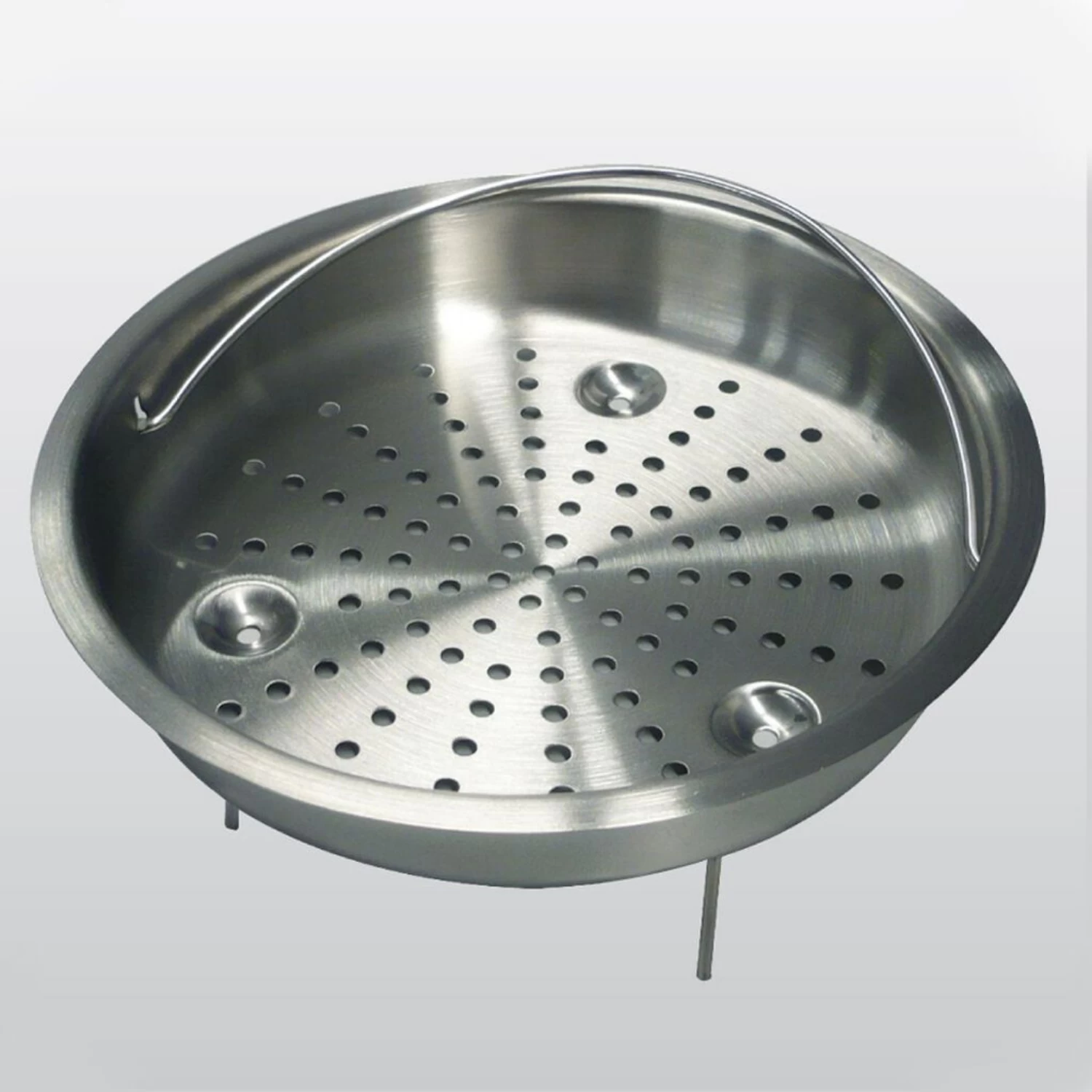 - Inzetmandje op onderzetter plaatsen en in de pan plaatsen. Voor het onder druk stomen van gerechten