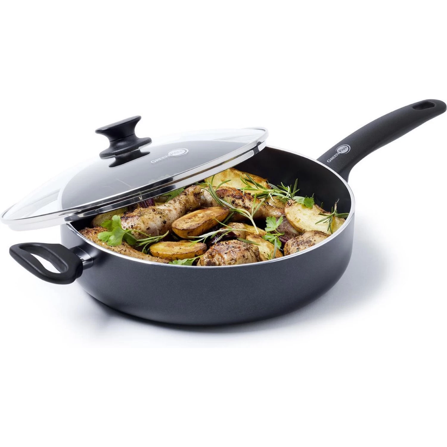 Jij bakt de lekkerste gerechten met de GreenPan Cambridge Black hapjespan met deksel Ø28 cm. Krokant bakken, braden, roerbakken, stoven of een heerlijke risotto maken gaat zeker lukken met deze hapjespan. De pan kleeft niet en warmt gelijkmatig op voor een perfecte garing van alle ingrediënten. De Thermolon Infinity Pro keramische antiaanbaklaag bevat geen schadelijke stoffen, zo hou je het gezond!