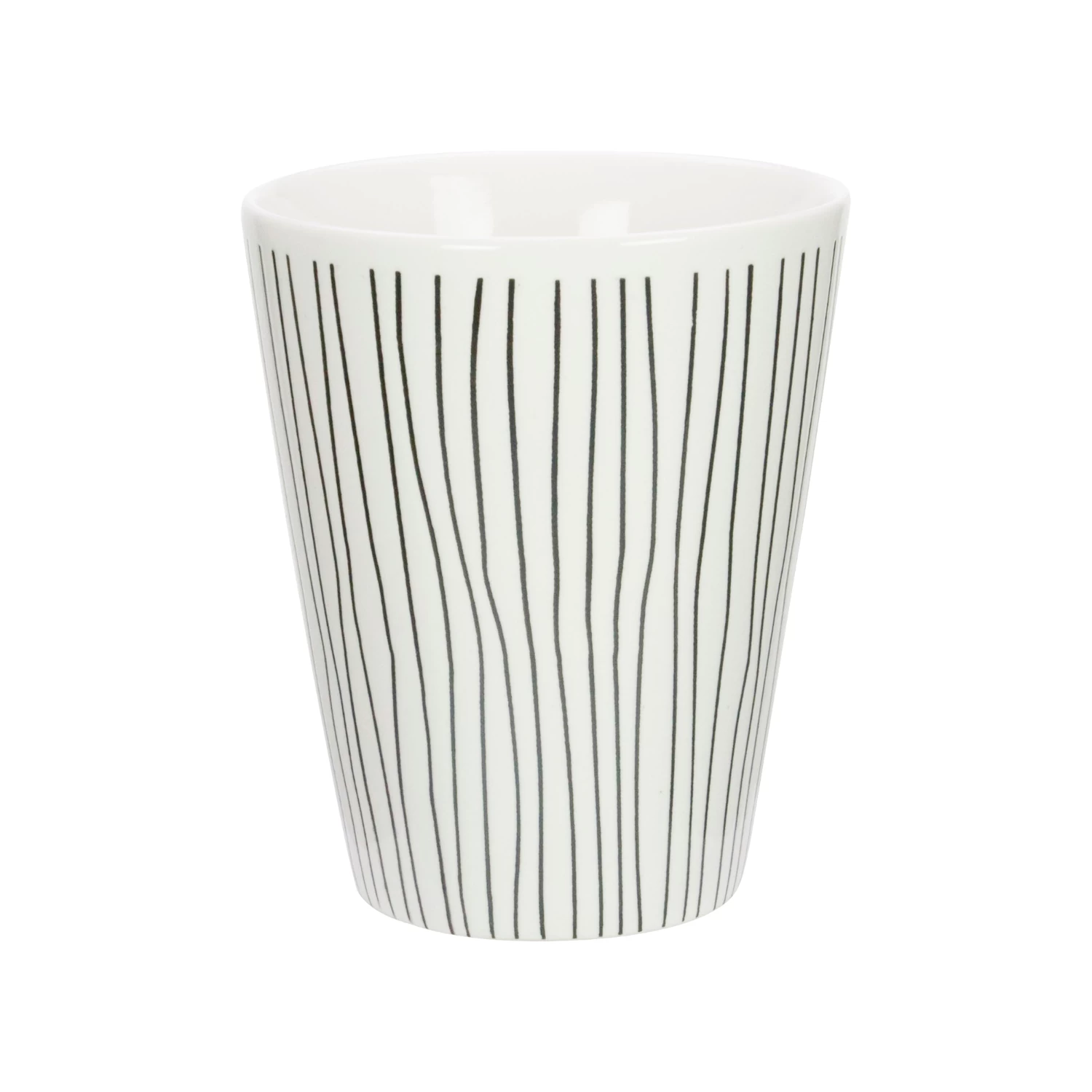 Jij drinkt je beker melk, of andere favoriete drinken, comfortabel en stijlvol uit deze Gusta Fika mok! Deze oorloze mok heeft een inhoud van 300 ml, en is gemaakt van keramiek. Met zijn witte tint en zwarte strepen is deze mok zeker een eye-catcher in iedere keuken!