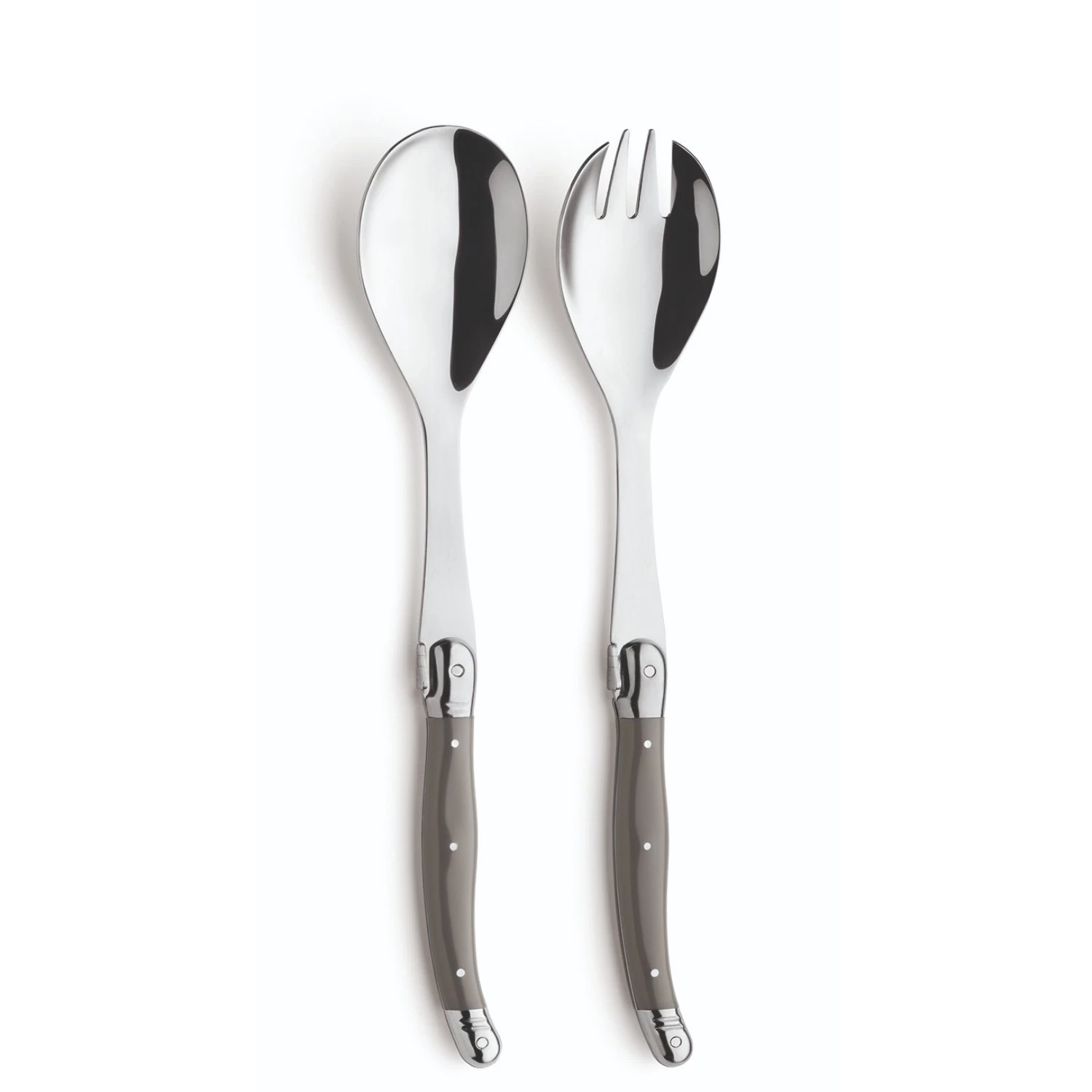 Dit traditionele slabestek van Lou Laguiole wordt geleverd in een luxe rustieke box. De set bestaat uit een slalepel en een slavork van RVS en heeft een rustieke bruin gekleurde handvatten. De set is vaatwasmachinebestendig. Overige specificaties: