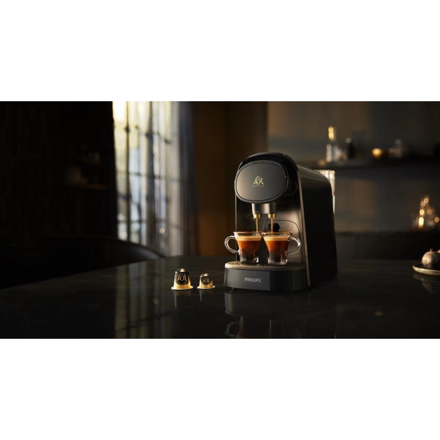 Deze L’OR Barista-koffiemachine zorgt met zijn dubbele functie voor dubbel zoveel plezier! De koffiemachine voor capsules heeft een zwarte luxe uitstraling. Het exclusieve systeem geeft je de mogelijkheid om 2 espresso’s tegelijk of een dubbele espresso in 1 kopje te zetten. Naast espresso kun je er natuurlijk ook je andere favoriete koffie mee zetten, of het nu een Lungo, een dubbele Lungo of een Ristretto is, geniet van je koffiemomentje! Bij het mooie apparaat krijg je een mooie verrassing. Het wordt geleverd met een breed assortiment capsules: 4 L’OR Espresso-capsules voor enkele shots en 5 L’OR Barista-capsules voor dubbele shots.