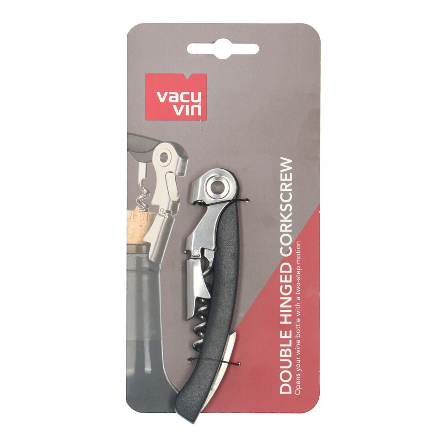 De Vacu Vin Dubbele Kurkentrekker is een handig hulpmiddel voor het openen van wijnflessen. Met de dubbele hefboomtechnologie verwijder je eenvoudig de kurk uit de fles, zonder deze te beschadigen. De kurkentrekker is geschikt voor alle soorten kurken, waardoor hij veelzijdig inzetbaar is. Bovendien is de Vacu Vin Dubbele Kurkentrekker voorzien van een geïntegreerde flesopener, zodat je ook gemakkelijk bierflesjes kunt openen. De compacte en ergonomische vormgeving zorgt ervoor dat de kurkentrekker comfortabel in de hand ligt en gemakkelijk op te bergen is. Met deze handige kurkentrekker van Vacu Vin geniet je nog meer van je favoriete wijnen.