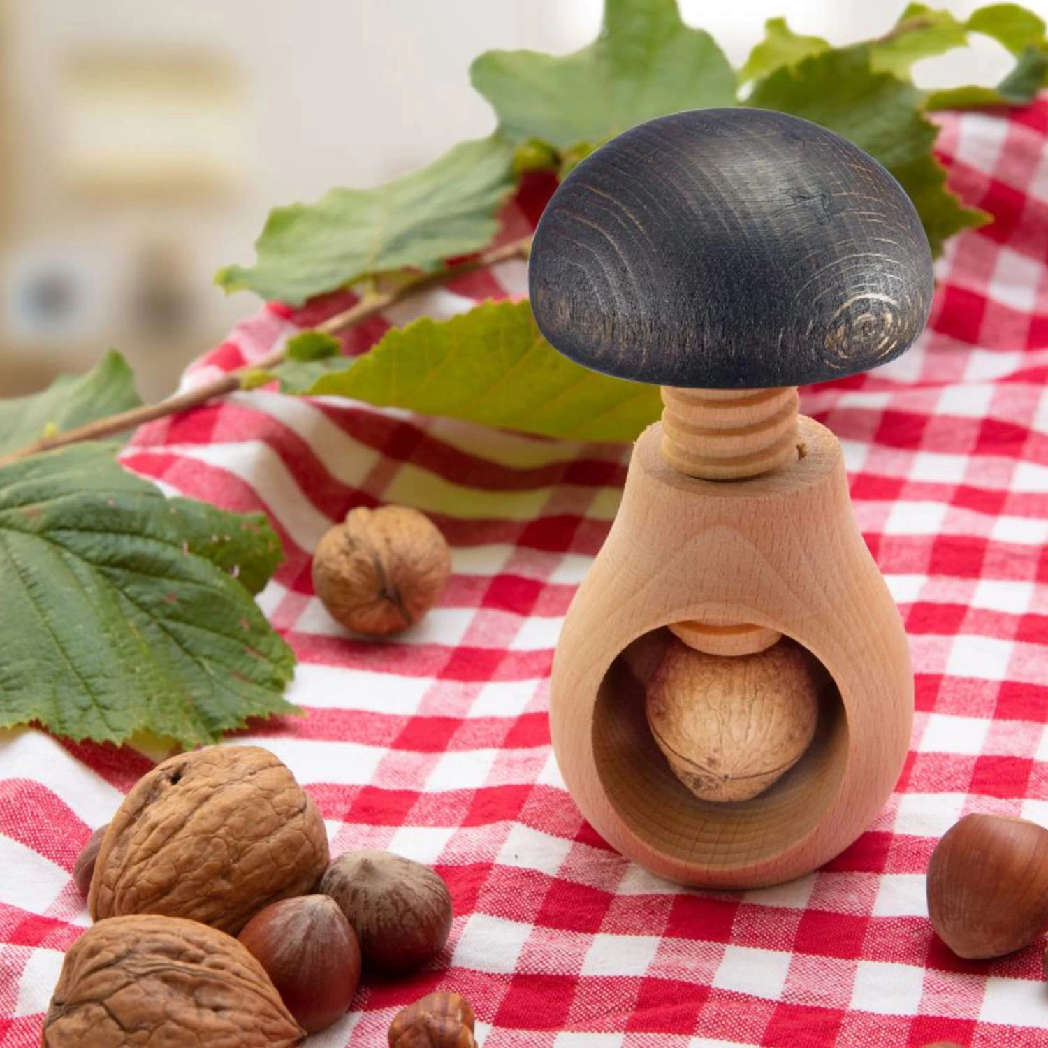 Stevige notenkraker van Westmark in de vorm van een paddenstoel voor het gemakkelijk kraken van notenschalen; geschikt voor diverse soorten noten, zoals hazelnoten, walnoten en amandelen. De notenkraker heeft een schroefsysteem hiermee kun je zuiver en moeiteloos noten kraken door aan de paddenstoelenhoed te draaien zonder de vrucht te verpletteren; plaats de noot in de paddenstoelvormige behuizing waarin de gebroken schaal wordt opgevangen.